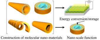 Our group develops constructions of supramolecular nano-materials that exhibit electronic and optoelectronic function. We also focus on fabrication of nanodevices for energy conversion and storage. |