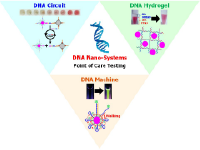 当研究室では、生命の設計図であるDNA をプログラム可能な部品としてとらえ、ナノテクノロジーとの融合による「DNAの仕掛けを利用したナノシステム」 の研究を行っています。具体的には、「その場」診断デバイスおよびDNAナノマシンなどの構築を行なっています。 |