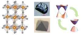 トポロジーと強相関という視点から量子物質の開発を行い、新しいエレクトロニクス・量子機能性の開拓を目指しています。遷移金属化合物を中心に物質合成を行い、精密物性測定や先端スペクトロスコピー(テラヘルツ・赤外分光、X線散乱など)を駆使して新しい電子・磁気・光物性を見出すことを目指しています。最近はトポロジカル半金属の金属絶縁体転移、磁性、熱起電力、電子ダイナミクスに興味を持って研究を進めています。 |